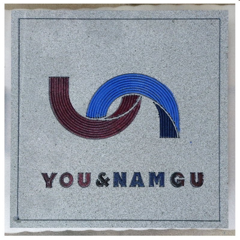 1. 전통무늬 자연석 판석 제조 기술을 응용한 LOGO 제품 제조 기술을 개발 하였습니다.